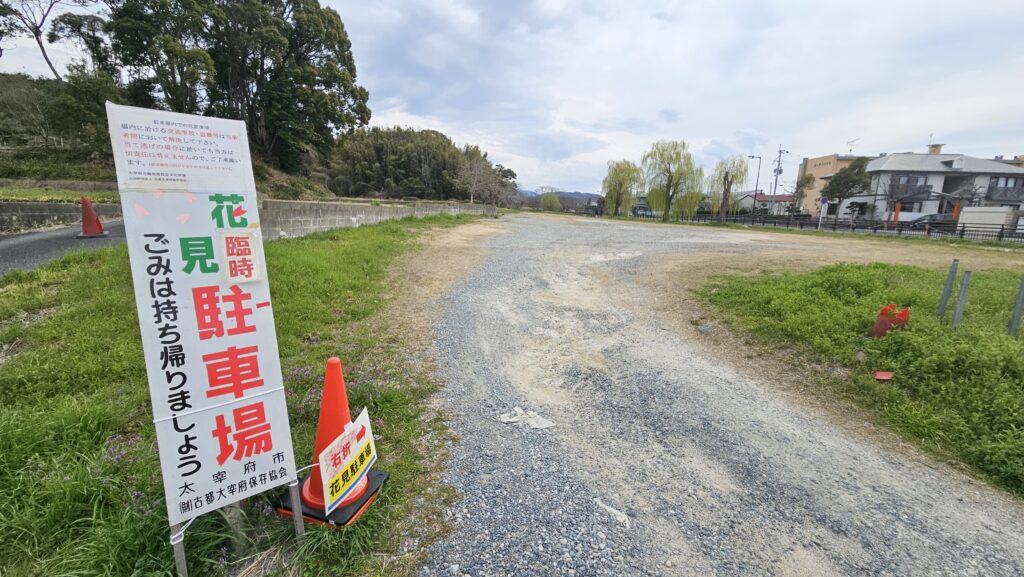 太宰府政庁跡にも無料の駐車場はありますが、お花見の時期は多くの花見客でにぎわいます。