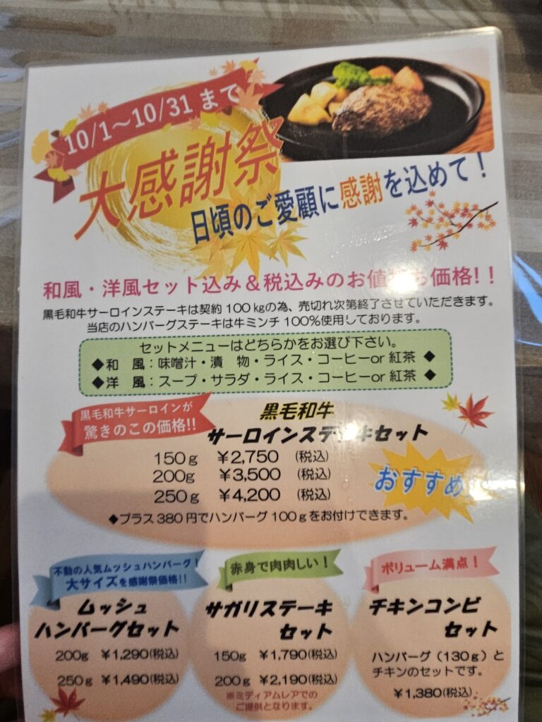 【筑紫野】ムッシュさかいのハンバーグ&ステーキ!10月は感謝祭でお得です