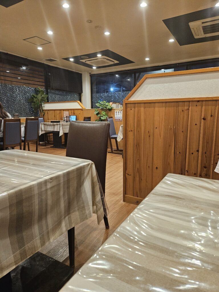 筑紫野店はちょっとレトロで落ち着いた雰囲気で、2人席と4人席のテーブルがあり、家族での食事にもぴったりです。