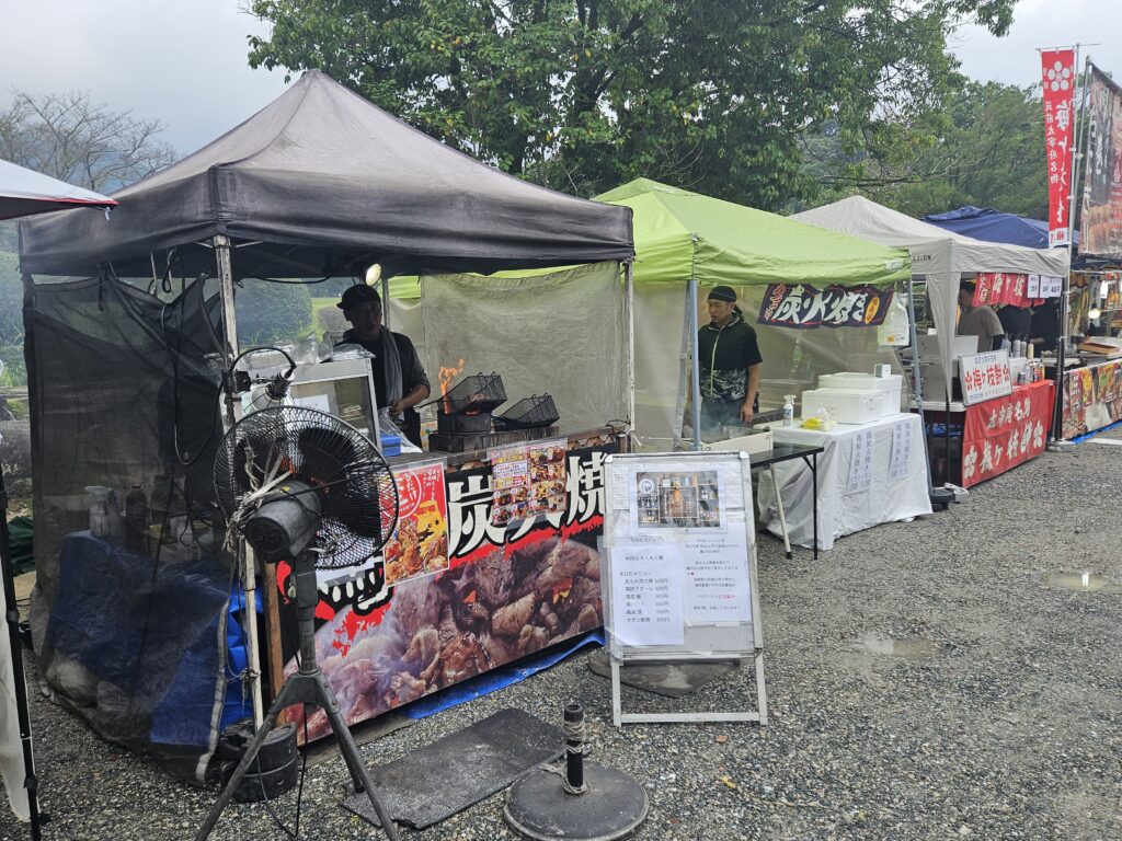 普段は政庁跡の駐車場のところにはお祭りの定番、焼きそばや焼き鳥、から揚げなどの屋台グルメがずらり。
