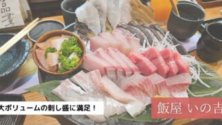 太宰府天満宮近くの「飯屋 いの吉」で、糸島の新鮮刺身盛り合わせと糸島豚ローストが楽しめる4,000円コースを実食。魚も肉も絶品でボリューム満点!予約特典の杏仁豆腐も濃厚で大満足。